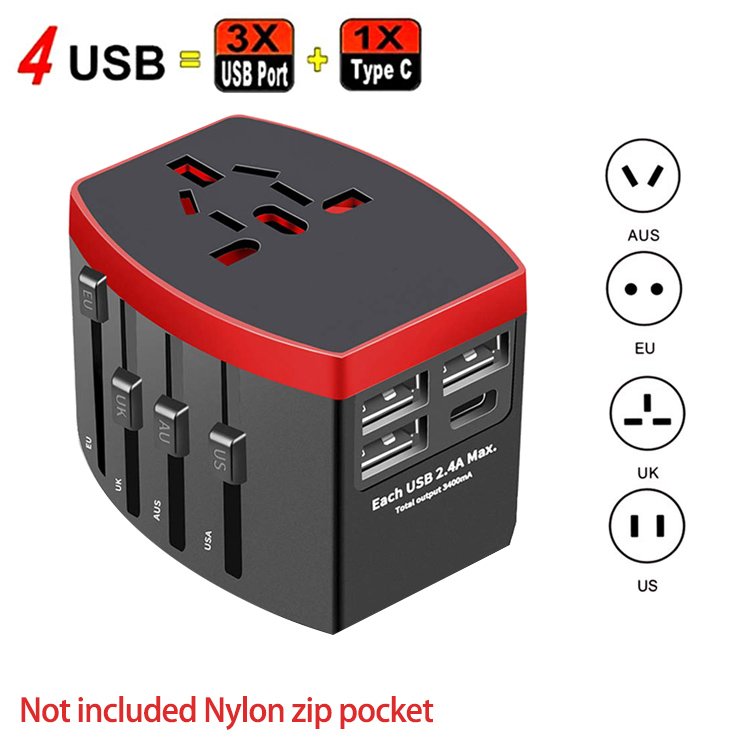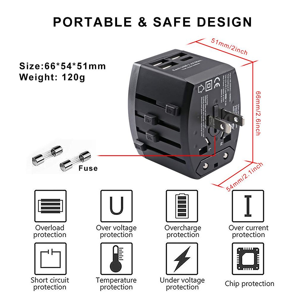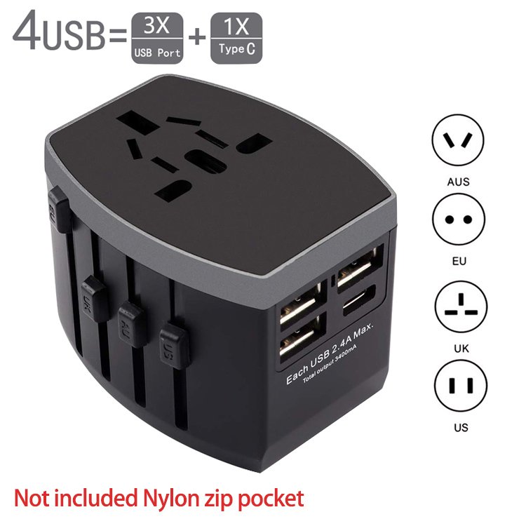 Universal travel adapter USB with Certification: FCC / CE-LVD / CE-EMC / RoHS