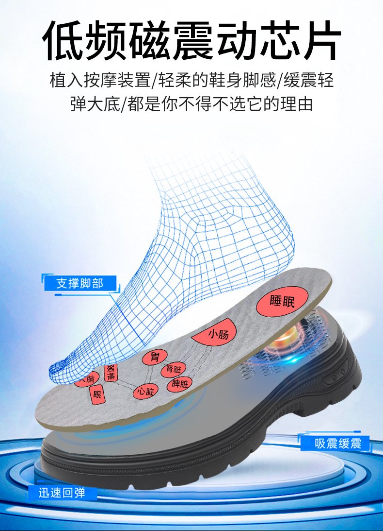 Magnetic vibration massage anti-pollution casual shoes, with 1000 times of magnetic vibration per step, you can enjoy massage service while walking. Shock absorption and light elasticity protect your feet, saying goodbye to foot pain and swelling