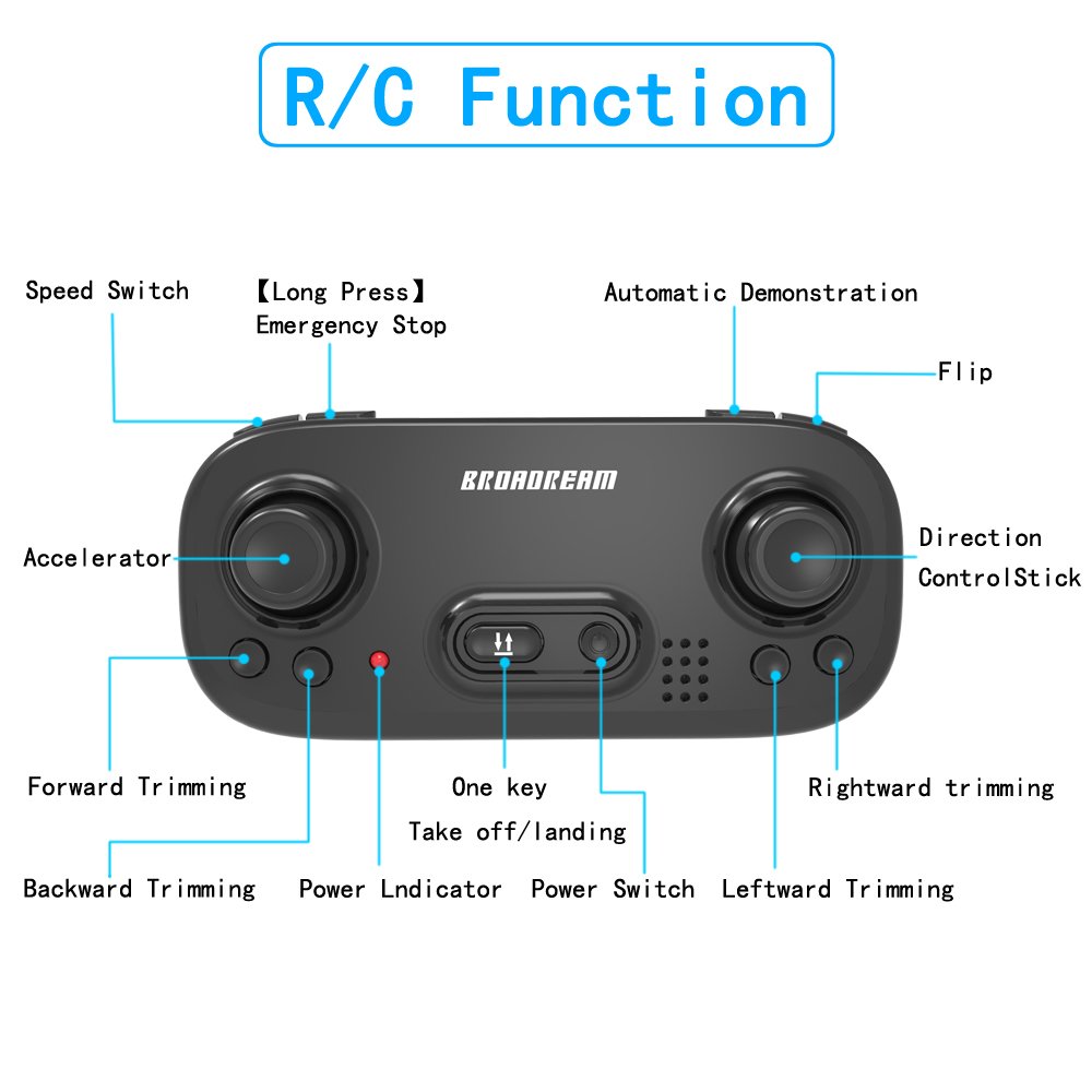 | Flight Features | Key Features: | Ascend/Descend, Turn Left/Right, Forward/Backward, Left/Right Side Fly, Barometric Altitude Hold, Hover, One-Key Takeoff/Landing, One-Key Emergency Stop, One-Key Demo, Headless Mode, Three Speed Gears, 360° Flips. |