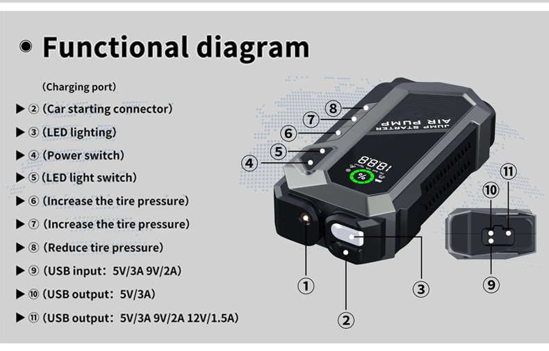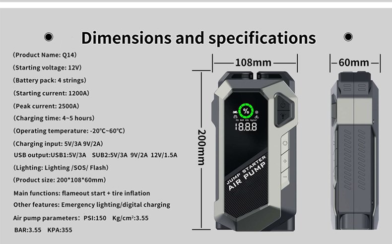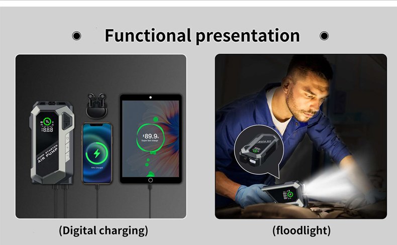 Be the first to review “2025 Car Jump Starter & Air Compressor 6000mAh Power Bank with LCD Display & Smart Clips” Cancel reply