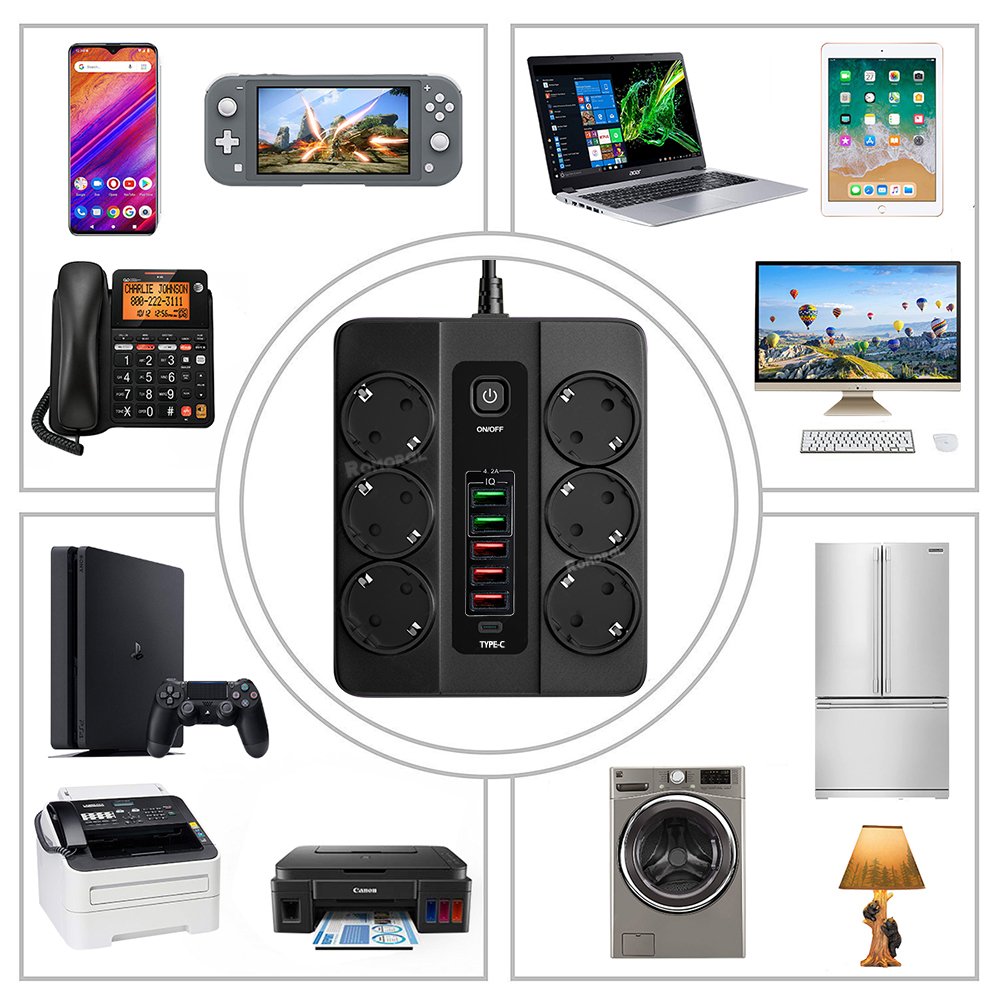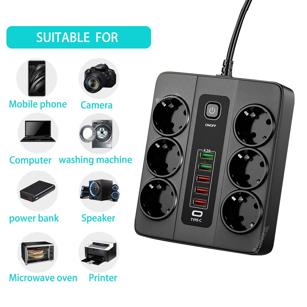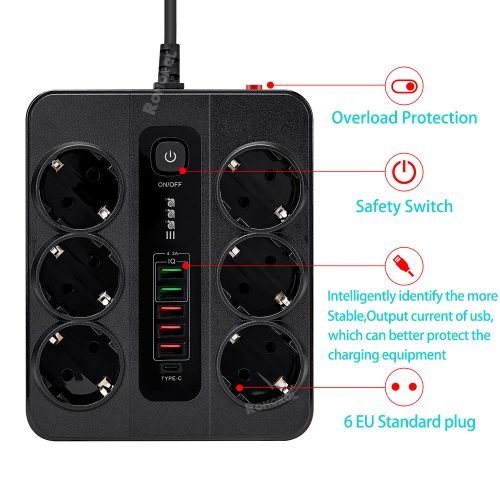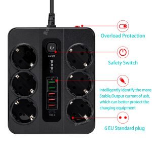 Outlet Number: Equipped with 6 outlets for plugging multiple devices simultaneously.