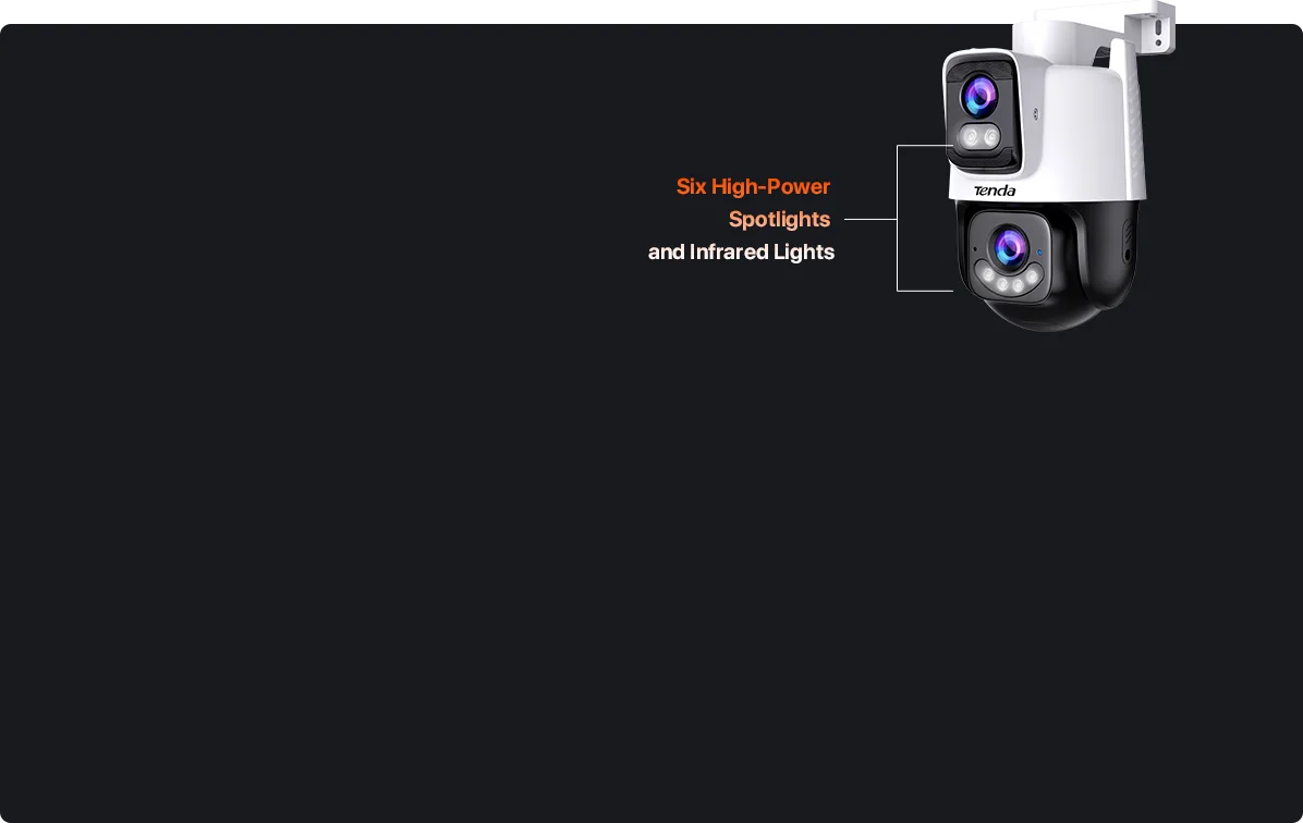 Dual lenses linkage design coupled with advanced human tracking algorithms. When the fixed 4 mm wide-angle lens detects human activity, the PT lens with a 6 mm telephoto capability automatically locking onto the subject to meticulously record their movements.