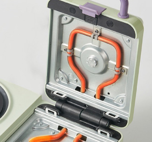 * Comfortable handle for the baking section with safety lock.