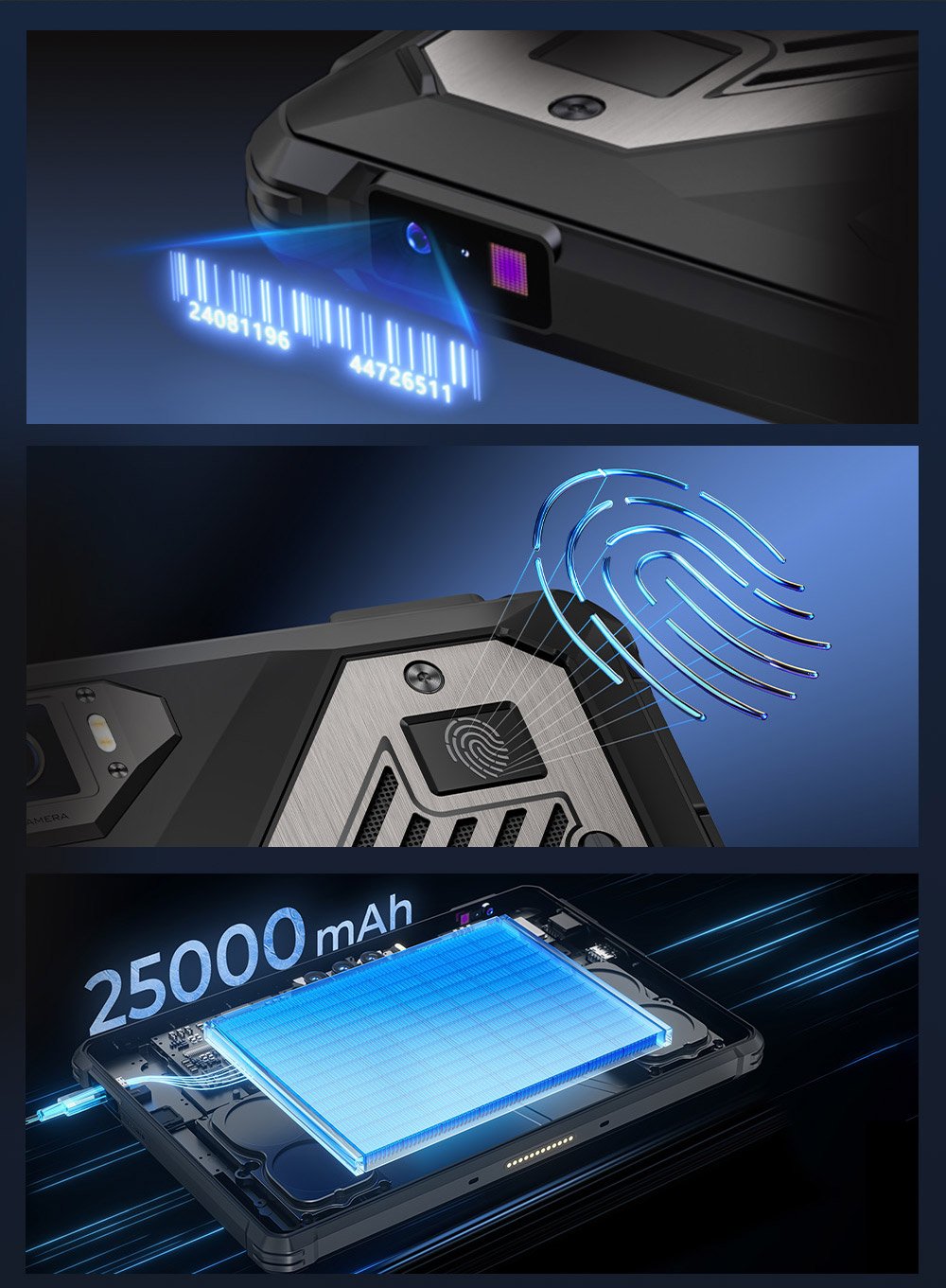 - 25000mAh Battery: Long-lasting power for all-day use.