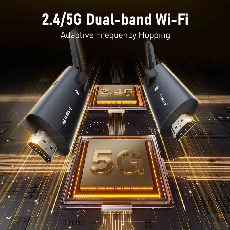 Equipped with 5dBi high-gain antennas and 5G Wi-Fi, it enables stable 1080P@60Hz video and audio streaming up to 200 meters (1TX–1RX), 130m (1TX–2RX), or 100m (1TX–3/4RX) in open environments.
