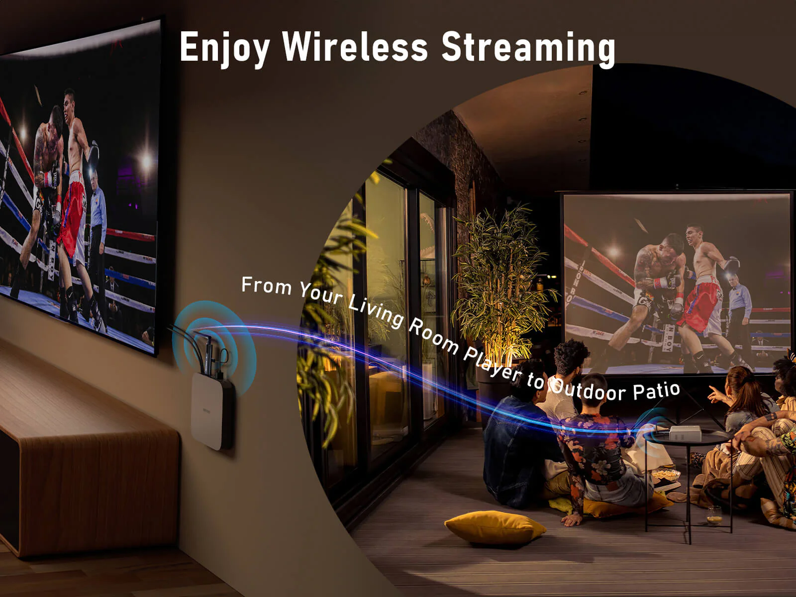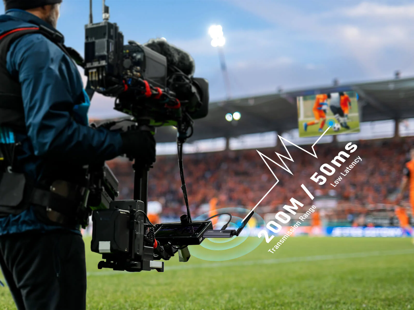 Utilizes advanced H.264 hardware compression to ensure smooth, low-latency (≤50ms) Full HD transmission—even on large 200″ displays or across multiple receivers.