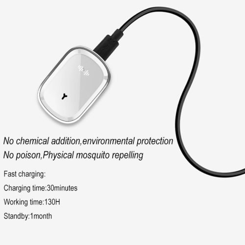 *Function: Ultrasonic Anti-Mosquitoes *Input: 5V/1A *Output: 34Hz-70Hz *Battery Capacity: 90mAh *Charging Time: 30 mins *Working Time: 130 hours *Colour: White/Black